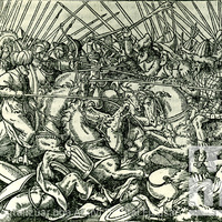Gravurë e shek XV pikture. Beteja midis shqiptarëve dhe Turqve.